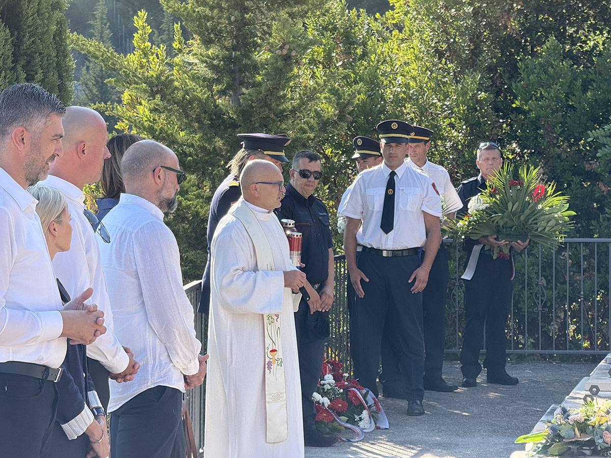 Po završetku mise, okupljeni su se uputili na mjesto Goranove pogibije, na teško pristupačnom terenu između sela Ljubač i Gromače, gdje su upaljene svijeće ispred spomen-obilježja „Trag svjetla“, trajnog podsjetnika na nesebičnu žrtvu i hrabrost preminulog kolege koji je život izgubio gaseći požar na otvorenom prostoru 31. srpnja 2022. godine.